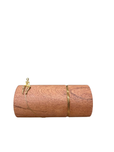 Cesto produzido artesanalmente em fibra com alça em dourado