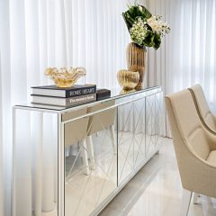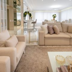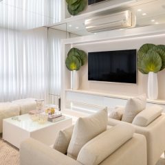 Este apartamento foi decorado com as peças da Cristiane Marcante Decoração e quem assina o Projeto é nossa parceira arquiteta Vanessa Guerra, que trabalhou com peças em tons claros e espelhos, para dar amplitude ao espaço.