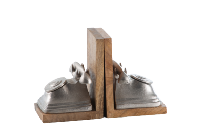 Aparador de livro em alumínio fundido e madeira natural, peça indiana