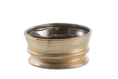 Centro de mesa em alumínio na cor dourada.