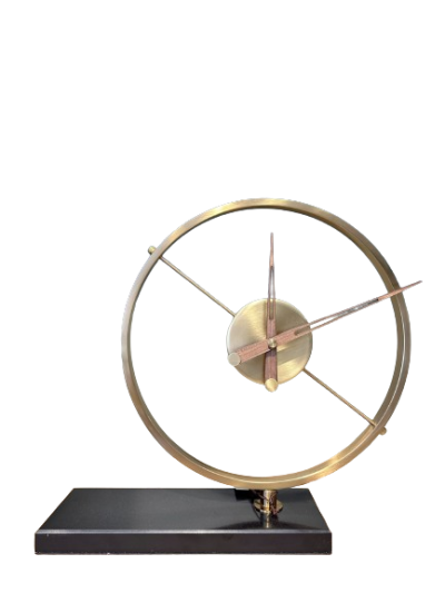 Relógio ouro com base de mármore.
