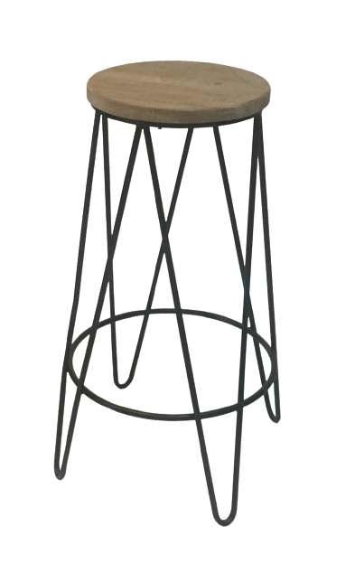 Banqueta aramada em ferro, com tampo em madeira natural, peça indiana
