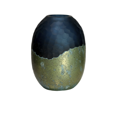 Vaso em vidro espelhada, com detalhe em ouro velho, peça indiana.