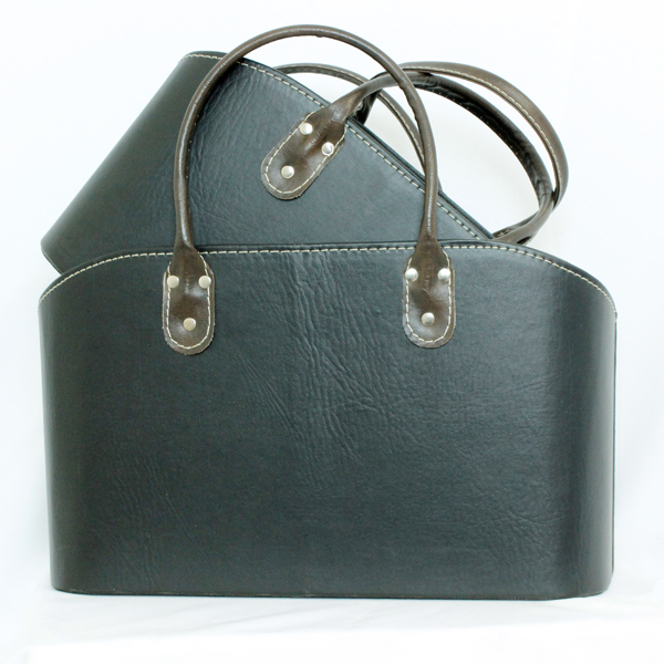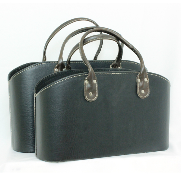 Revisteiro em couro na cor preta e alças marrom.